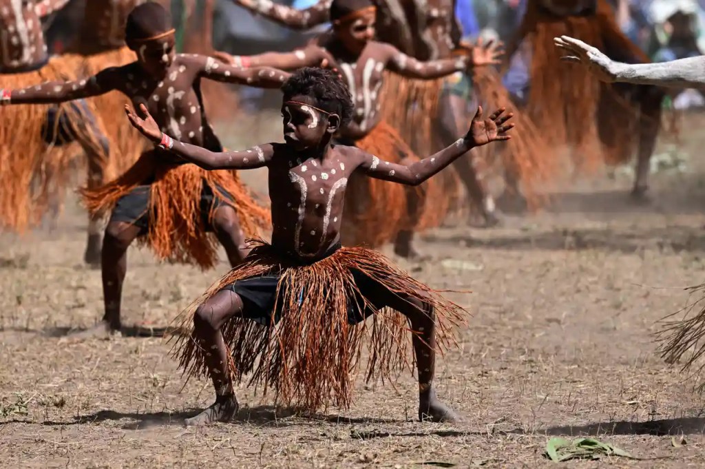 Although not overtly political in nature, this year’s festival is given potency by its timing at the end of Naidoc week and in the lead up to the voice to parliament referendum. The yes campaign has a strong presence, with evening discussions explaining the significance of the moment to roughly 5,000 spectators.